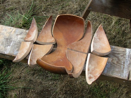 I cut apart a wooden bowl and reassembled it to approximate Crown SASS system characteristics except with less angle between axes of the microphone capsules and with a narrower front to the baffle nose piece, and with curved surfaces instead of flat.